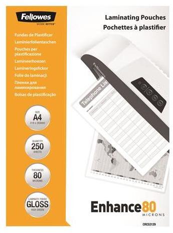 Fellowes Meleglamináló fólia, 80 mikron, A4, fényes, 250 db, FELLOWES (5312903) - mystock