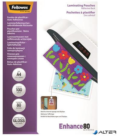 Fellowes Meleglamináló fólia, 80 mikron, A4, fényes, öntapadó, 100 db, FELLOWES (5302202) - alter