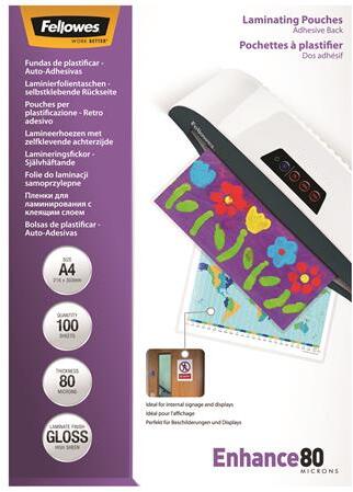 Fellowes Meleglamináló fólia, 80 mikron, A4, fényes, öntapadó, 100 db, FELLOWES (IFW53022) - irodaoutlet