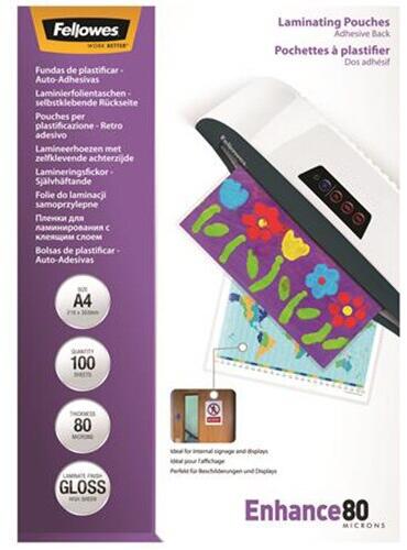 Fellowes meleglamináló fólia, 80 mikron, A4, fényes, öntapadó, 100 db (IFW53022)