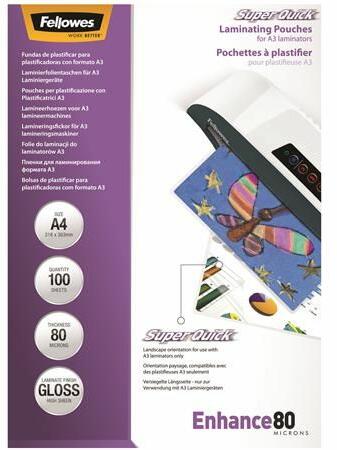 Fellowes Meleglamináló fólia, 80 mikron, A4, SuperQuick, fényes, 100 db, FELLOWES (100 db) (IFW54400)