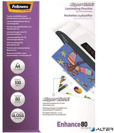 Fellowes Meleglamináló fólia, 80 mikron, A4, SuperQuick, fényes, 100 db, FELLOWES (5440001) - alter