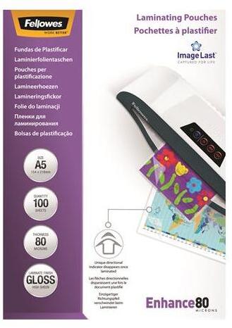 Fellowes Meleglamináló fólia, 80 mikron, A5, fényes, 100 db, FELLOWES (5306002) - tonerpiac