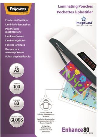 Fellowes Meleglamináló fólia, 80 mikron, A5, fényes, 100 db, FELLOWES (IFW53060) - irodasziget