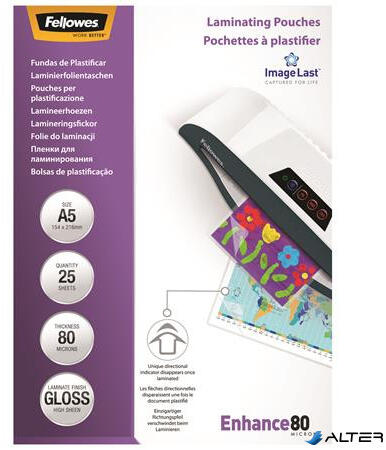 Fellowes Meleglamináló fólia, 80 mikron, A5, fényes, 25 db, FELLOWES (5396003) - alter