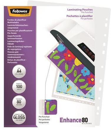 Fellowes Meleglamináló fólia, lefűzhető, 80 mikron, A4, fényes, 100 db, FELLOWES (5452502) - mystock