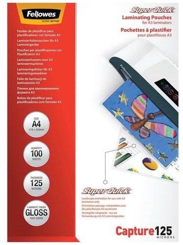 Fellowes SuperQuick lamináló fólia A4 fényes 125 mikron perforált 100db (csak A3-as géphez! ) (IFW54401)