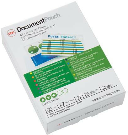 Különböző méretű és vastagságú laminálófóliák névjegykártya, jogosítvány és egyéb kártya méretű anyagok megóvásához és kiemeléséhez. -méret: A7 -vastagság: 125 mikron -fényes felület -kiszerelés: 100 db/csomag