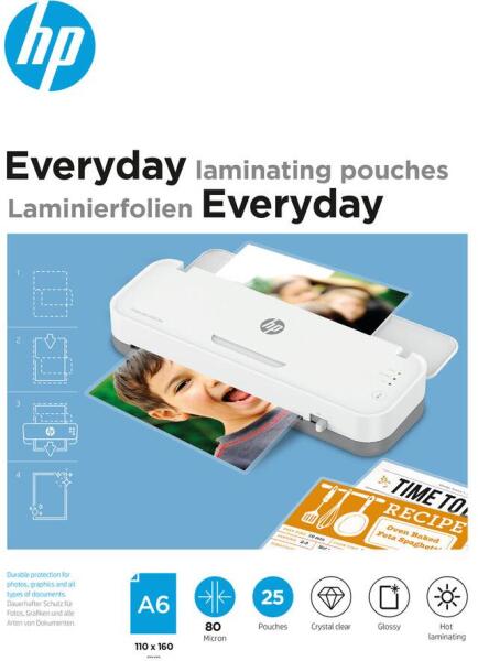 HP Inc HP Inc. Everyday 80 mikron A6 fényes lamináló fólia (25 db / csomag) (9156) (9156)