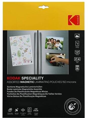 Lamináló fólia KODAK mágneses. Kiszerelés: 10 ív/csomag. Csomag tartalma: 10x15 cm - 4 db13x18 cm - 3 dbA4 - 3 dbFólia vastagság: 150 mikron.