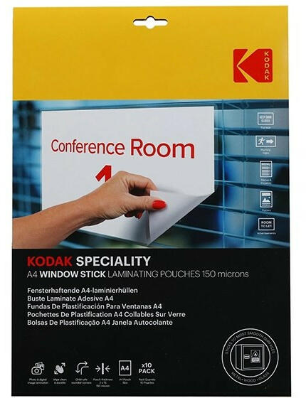 Lamináló fólia KODAK üvegre tapadó. Méret: A/4. Fólia vastagság: 150 mikron. Kiszerelés: 10 ív/csomag.