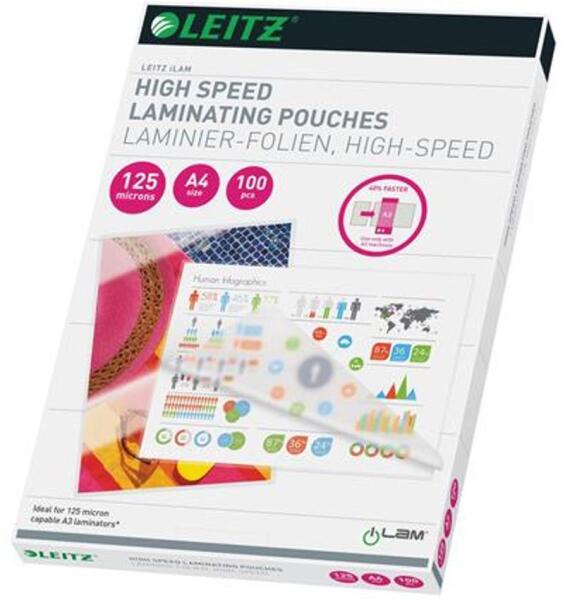 LEITZ Meleglamináló fólia, 125 mikron, A4, fényes, LEITZ "iLam" - 100db (E74300002)