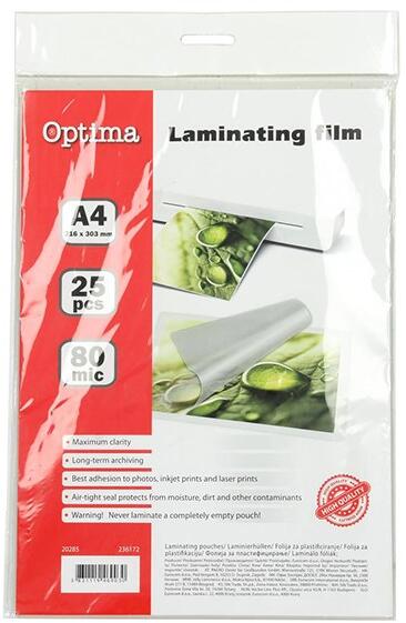 OPTIMA Lamináló fólia OPTIMA A/4 80 mikron fényes 25/csom (20285) - vectraline
