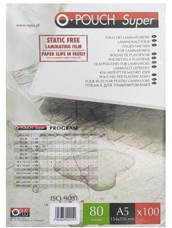 Opus Lamináló fólia OPUS A/5 154x216mm 80 mikron fényes 100/dob (FN42) - fotoland